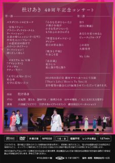 「杜けあき40周年記念コンサート」(2019年8月)の模様を収録したDVDです。懐かしい仲間たちと宝塚時代をプレイバック!思い出の作品や様々な楽曲をお届けし、感動の渦に包まれたコンサートを映像にてお楽しみください♪